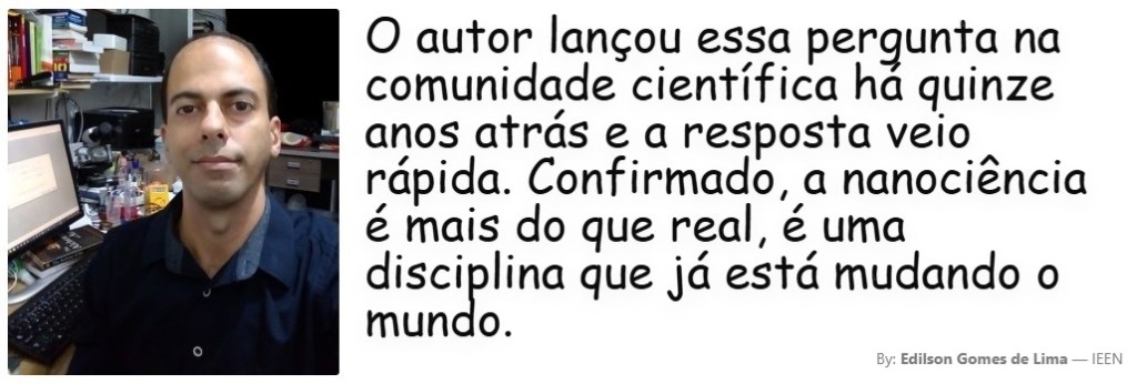 "A nanotecnologia é compreensível quando ajustamos seu escopo de 1 a 100 nm à nossa mente, que é onde está a área de atuação dessa ciência para produzir futuro." — Edilson Gomes de Lima